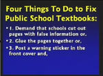 As you can see from this frame grab from his video, Hovind is seriously advocating “tearing out” or “gluing together” pages in science books he doesn’t “agree” with. “It’s just a book” he says “It’s not sacred, it’s made out of paper.” So you can add vandalism and destruction of public property to the list of his crimes. I wonder how he would feel if I visited his church and did the same thing to–say–Revelation.